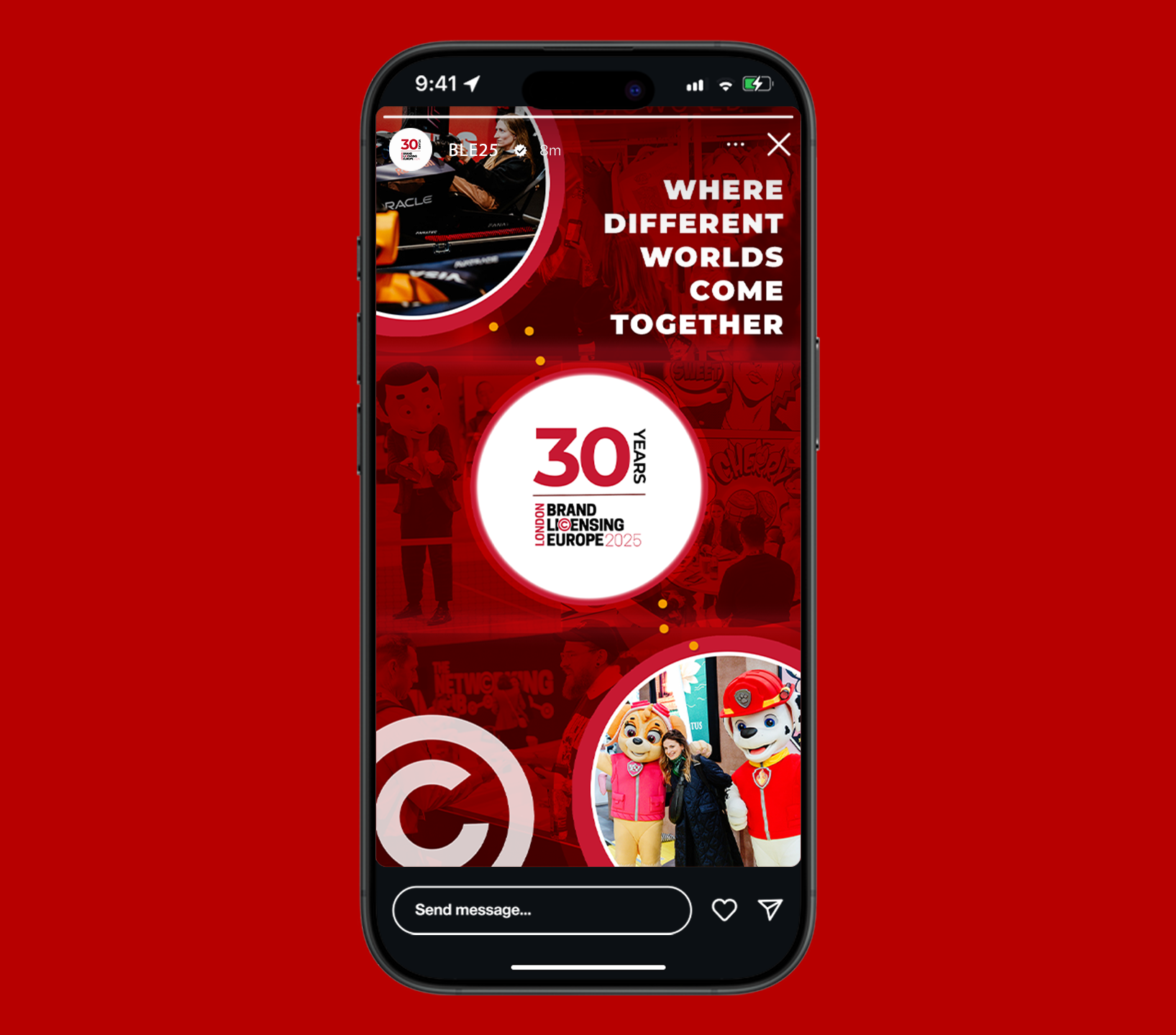 Curated imagery that places contrasting worlds side by side , entertainment IP, brand activations, and business networking to show what only happens when people physically attend.