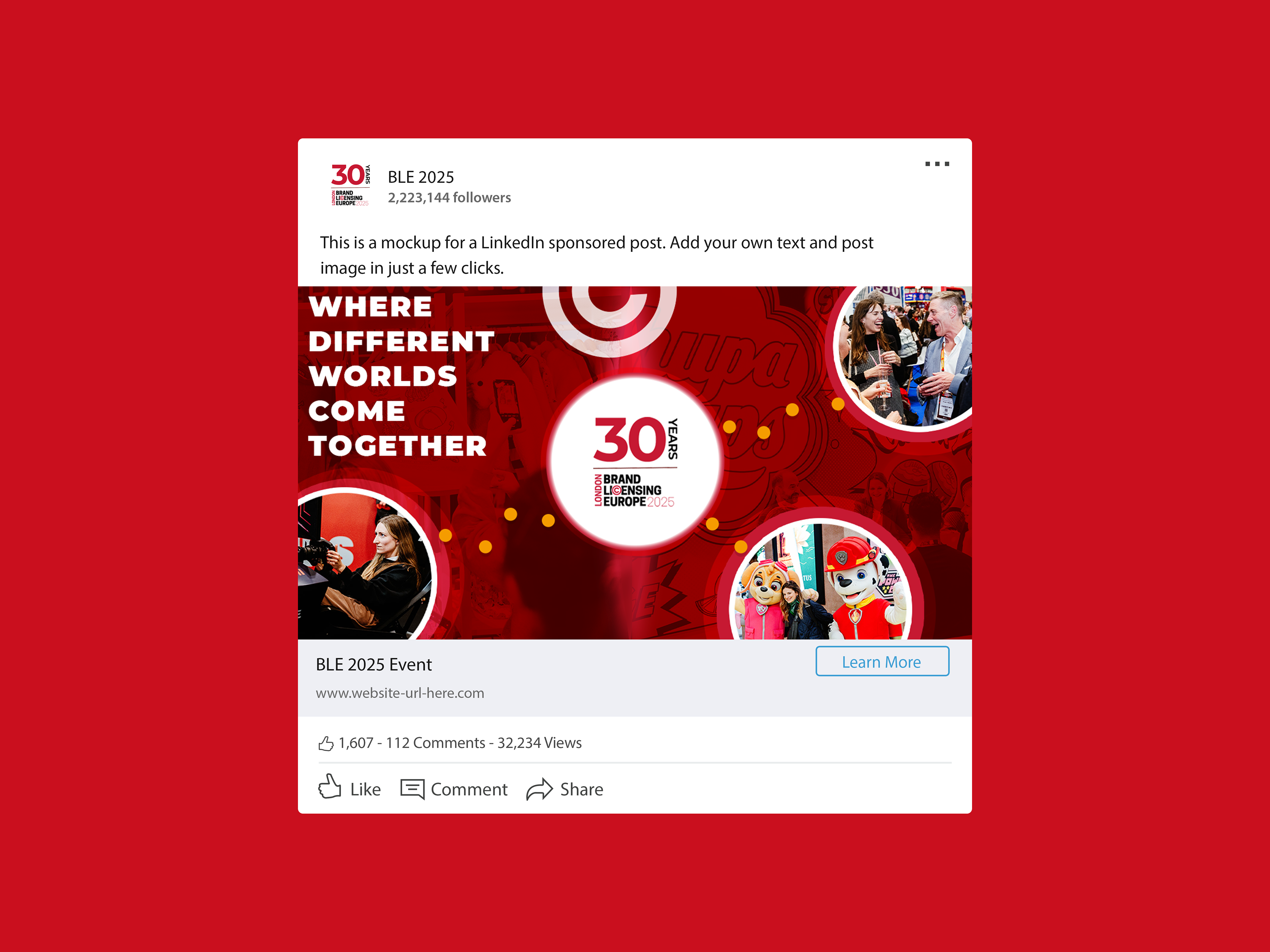 Brand Licensing Europe required a 30th anniversary promotional campaign for its 2025 event. The objective was not only to mark the milestone, but to encourage professionals to attend the event in person, reinforcing BLE as the physical meeting point where the licensing industry connects.